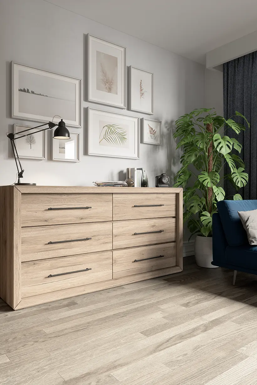 Dieses Dekor mit seinen charakteristischen schwarzen Rissen eignet sich für eine Vielzahl von Anwendungsmöglichkeiten auf Möbeln oder Türen. In Kombination mit Pastellfarben oder neutralen Unifarben entsteht ein Gesamteindruck, der den skandinavischen Stil widerspiegelt.