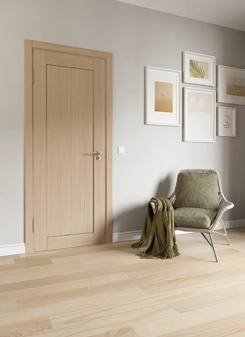 Salvador Oak jest też interesującym wyborem dla rynku drzwiowego. Uporządkowany rysunek i spokojny charakter ułatwiają tworzenie eleganckich, neutralnych powierzchni, które nie „męczą” wzroku i dobrze łączą się z dodatkami.